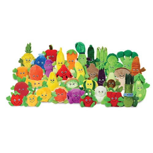 - 35 plush, cuddly bean-bag fruit and vegetable characters are between 3 and 7 in. tall and have embroidered faces to amuse little ones