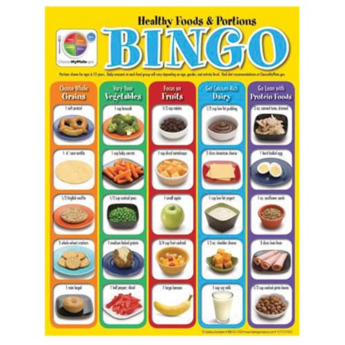 Elementary students will love learning about proper food portions when instructors use this Healthy Foods and Portions Bingo Set as a nutritional teaching aid. Each column represents a different food group, from grains to proteins, and every square displays a healthy food portion in that group. With this fun visual game, kids will learn the appropriate serving size for different foods they consume every day in order to support a happy and healthy life.