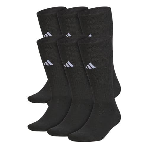 The adidas Team 6-Pack 2.0 Crew Socks are a great choice for athletes of all sports. Your feet will stay cool and dry thanks to moisture-wicking yarns, and the ultra-cushioned construction of the foot offers superior comfort and durability.