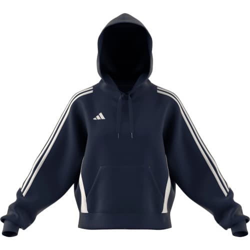 Tackle training like the pros. This Hoodie moves with you from warmup to cooldown. A comfortable cotton blend with ribbed cuffs keeps you cozy, while an embroidered adidas logo and iconic 3-Stripes down the arms show your dedication to the beautiful game. Regular fit and fleece inside make this hoodie ideal for sideline cheering or post-match celebrations. For soccer players and fans alike, the Tiro 24 League Sweat Hoodie scores style points on and off the pitch.