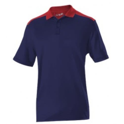 Alleson Adult Color Block Gameday Polo 95% Cationic Polyester/5% Spandex. Basic color block polo with set-in sleeves. Solid body with contrast color front and back yoke and rib knit collar. Back yoke seam for appearance and comfort. Straight hemmed bottom and sleeve ends. Self-material body, 3-button placket. Tagless labeling for added comfort.