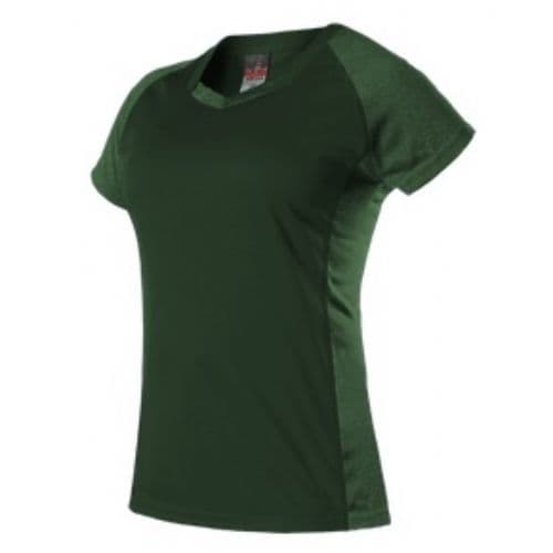 Alleson Girl's Dig Short Sleeve Volleyball Jersey 100% Extreme Microfiber Cationic Colorfast Polyester with moisture management fibers. Solid color body with matching body color heather raglan sleeves, side and front collar inserts. Flatlock seamed at armholes to reduce friction and improve durability. V-Neck. Straight hemmed bottom and sleeve openings.