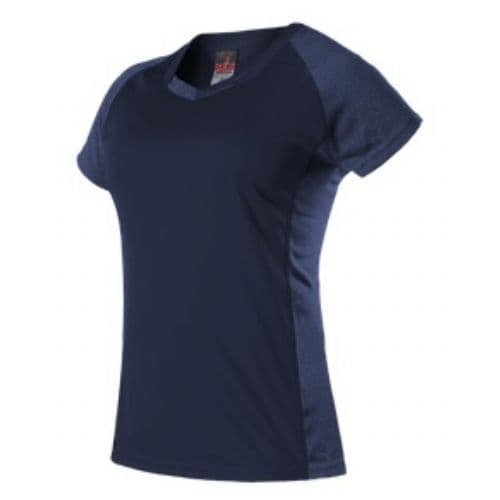 Alleson Girl's Dig Short Sleeve Volleyball Jersey 100% Extreme Microfiber Cationic Colorfast Polyester with moisture management fibers. Solid color body with matching body color heather raglan sleeves, side and front collar inserts. Flatlock seamed at armholes to reduce friction and improve durability. V-Neck. Straight hemmed bottom and sleeve openings.