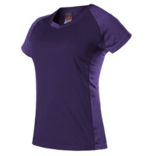 Alleson Girl's Dig Short Sleeve Volleyball Jersey 100% Extreme Microfiber Cationic Colorfast Polyester with moisture management fibers. Solid color body with matching body color heather raglan sleeves, side and front collar inserts. Flatlock seamed at armholes to reduce friction and improve durability. V-Neck. Straight hemmed bottom and sleeve openings.