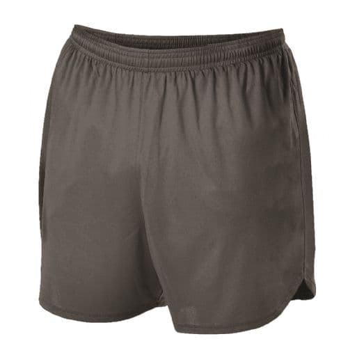 Solid lightweight woven body with charcoal inner tricot knit liner. V-Notch on sides of leg openings for mobility. Self-fabric covered elastic waistband. 4" Inseam.
