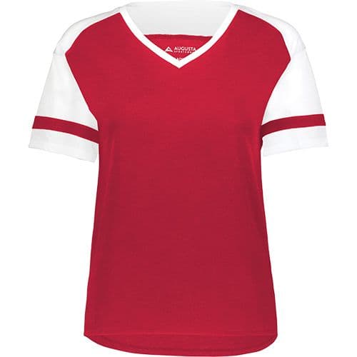 Cheer on your team or represent your brand in the Ladies Fanatic 2.0 Tee from Augusta Sportswear. This ladies' fit tee combines style and comfort with features like a v-neck collar, set-in sleeves with angled shoulder seam, and a dropped tail hem.