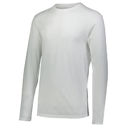 Augusta Men's Tri-Blend Long Sleeve Crew The extra soft Tri-Blend Long Sleeve Crew sports a trendy fit and stylish colors. A perfect balance of cotton, rayon, and polyester along with a brushed peach surface make this Long Sleeve T-shirt an easy favorite. It’s the new basic tee – for promotions, fanwear, administration, and corporate wear. 3.8 ounce, 50% polyester/38% cotton/12% rayon tri-blend knit. Fits loose to body. Tear away label. Crew neck. Set-in sleeves with rolled forward shoulder seam.