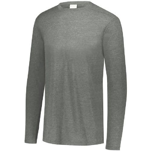 Augusta Men's Tri-Blend Long Sleeve Crew The extra soft Tri-Blend Long Sleeve Crew sports a trendy fit and stylish colors. A perfect balance of cotton, rayon, and polyester along with a brushed peach surface make this Long Sleeve T-shirt an easy favorite. Its the new basic tee for promotions, fanwear, administration, and corporate wear. 3.8 ounce, 50% polyester/38% cotton/12% rayon tri-blend knit. Fits loose to body. Tear away label. Crew neck. Set-in sleeves with rolled forward shoulder seam.