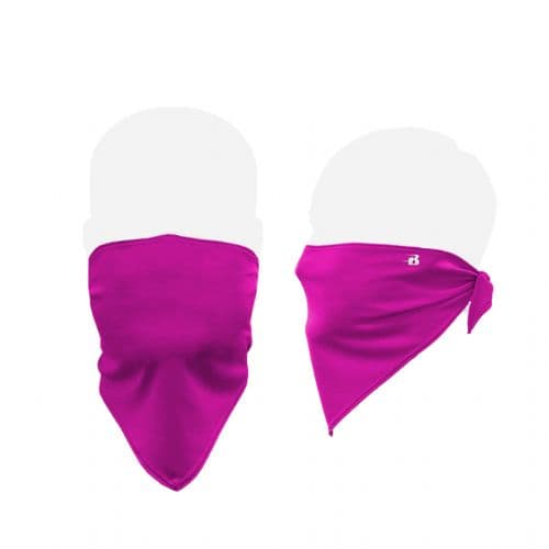 Badger B-Core Face Guard 100% Polyester moisture management fabric. Custom cut-and-sewn design to ensure maximum coverage of the nose and mouth and to serve as a barrier with exterior environment. Performance stretch material to provide maximum comfort. Simple to use bandana style tie feature that fits all sizes. Non-medical grade - does not replace N95 mask. Width @ Top: 29" - Length @ Center Front: 10". Returns not accepted. We will not re-sell face-guards. Minimum of 12 pieces to decorate.