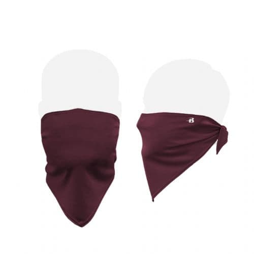 Badger B-Core Face Guard 100% Polyester moisture management fabric. Custom cut-and-sewn design to ensure maximum coverage of the nose and mouth and to serve as a barrier with exterior environment. Performance stretch material to provide maximum comfort. Simple to use bandana style tie feature that fits all sizes. Non-medical grade - does not replace N95 mask. Width @ Top: 29" - Length @ Center Front: 10". Returns not accepted. We will not re-sell face-guards. Minimum of 12 pieces to decorate.