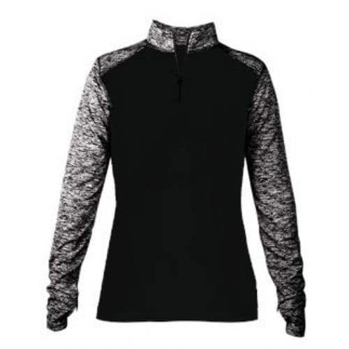 Players can help their team emerge victorious or push themselves toward new personal bests in this Badger Women's Sport Blend 1/4-Zip Pullover. Athletes will stay comfy as they log miles on chilly mornings or warm up before nighttime matchups, since this pullover is constructed from polyester to hold up to intense play throughout the entire season. With sport-paneled shoulders, this pullover delivers a wide range of motion to give sports stars control of each spike over the net or home-run swing.