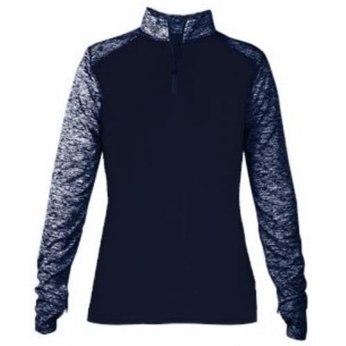 Players can help their team emerge victorious or push themselves toward new personal bests in this Badger Women's Sport Blend 1/4-Zip Pullover. Athletes will stay comfy as they log miles on chilly mornings or warm up before nighttime matchups, since this pullover is constructed from polyester to hold up to intense play throughout the entire season. With sport-paneled shoulders, this pullover delivers a wide range of motion to give sports stars control of each spike over the net or home-run swing.