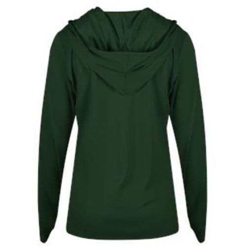 Rough weather won't stop athletes from achieving their fitness goals when they wear this Badger Women's B-Core Long-Sleeve V-Neck Hooded T-Shirt. Wearers can stay dry, fresh and comfortable during early-morning jogs or evening team practices thanks to the moisture-management, antimicrobial fabric, which helps keep perspiration and odors in check. Players will be able to perform efficiently in inclement conditions, since the attached hood features a drawstring to effectively keep out the elements.