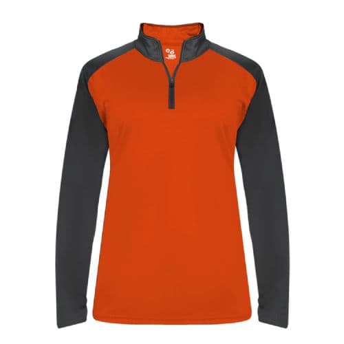 Badger Ladies Ultimate Sport 1/4 Zip 100% Soft Polyester Moisture Management/Antimicrobial Performance Fabric. UVA and UVB sun protection in areas covered by the shirt (UPF 50+). Super soft interlock fabric for comfort. Self-fabric collar with 7" locking zipper. Double-needle hemmed bottom. Badger heat seal logo on left sleeve.
