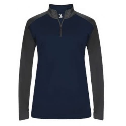 Badger Ladies Ultimate Sport 1/4 Zip 100% Soft Polyester Moisture Management/Antimicrobial Performance Fabric. UVA and UVB sun protection in areas covered by the shirt (UPF 50+). Super soft interlock fabric for comfort. Self-fabric collar with 7" locking zipper. Double-needle hemmed bottom. Badger heat seal logo on left sleeve.