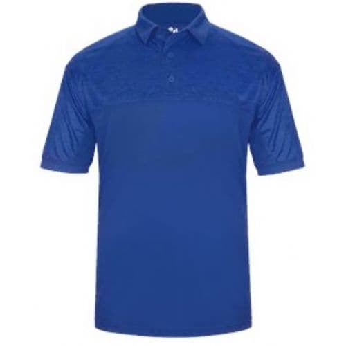 Badger Men's Blend Colorblock Tonal Polo 100% Polyester. Sublimated front and back yoke, sport shoulder and sleeves. Badger Sport shoulder for maximum movement. Solid lower sleeve insert and cuff for contrast detail. Three-button placket. Self-fabric collar. Taped back neck. Vented double-needle hem. Embroidered Badger logo on left sleeve.