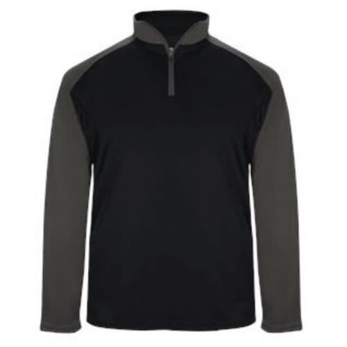 Badger Men's Ultimate Sport 1/4 Zip Badger heat seal logo on left sleeve. Badger sport paneledshoulder for maximum movement. 100% polyester moisture management/antimicrobial performance fabric. Contrast sport shoulder and sleeves. Superior interlock fabric. Doubleneedle hem Self-fabric with 8” locking zipper collar. UPF 50+ sun protection.