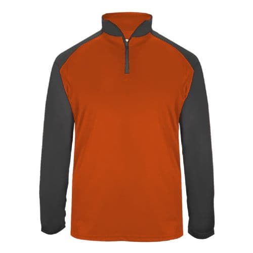 Badger Men's Ultimate Sport 1/4 Zip Badger heat seal logo on left sleeve. Badger sport paneledshoulder for maximum movement. 100% polyester moisture management/antimicrobial performance fabric. Contrast sport shoulder and sleeves. Superior interlock fabric. Doubleneedle hem Self-fabric with 8” locking zipper collar. UPF 50+ sun protection.