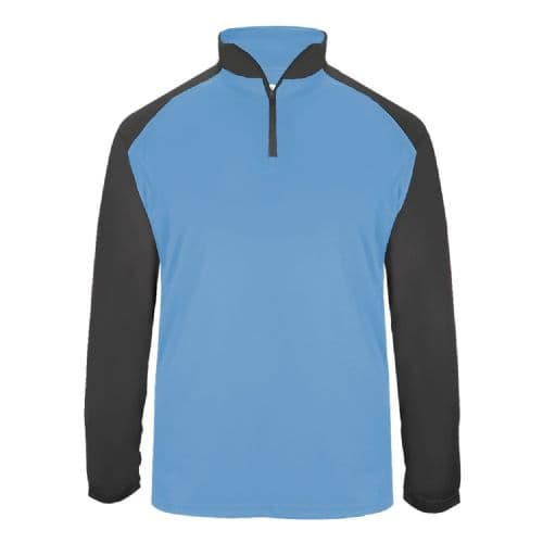 Badger Men's Ultimate Sport 1/4 Zip Badger heat seal logo on left sleeve. Badger sport paneledshoulder for maximum movement. 100% polyester moisture management/antimicrobial performance fabric. Contrast sport shoulder and sleeves. Superior interlock fabric. Doubleneedle hem Self-fabric with 8” locking zipper collar. UPF 50+ sun protection.