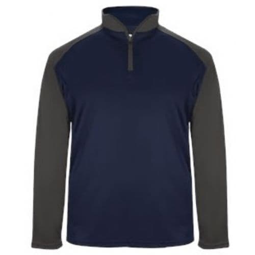 Badger Men's Ultimate Sport 1/4 Zip Badger heat seal logo on left sleeve. Badger sport paneledshoulder for maximum movement. 100% polyester moisture management/antimicrobial performance fabric. Contrast sport shoulder and sleeves. Superior interlock fabric. Doubleneedle hem Self-fabric with 8” locking zipper collar. UPF 50+ sun protection.