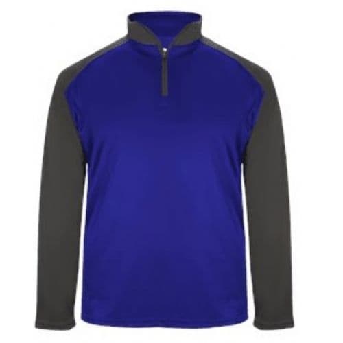 Badger Men's Ultimate Sport 1/4 Zip Badger heat seal logo on left sleeve. Badger sport paneledshoulder for maximum movement. 100% polyester moisture management/antimicrobial performance fabric. Contrast sport shoulder and sleeves. Superior interlock fabric. Doubleneedle hem Self-fabric with 8 locking zipper collar. UPF 50+ sun protection.