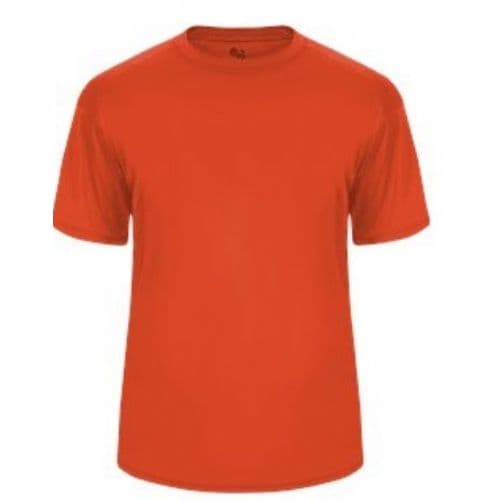 Badger Men's Ultimate Tee Badger heat seal logo on left sleeve. Self-fabric collar. Badger sport paneled shoulder for maximum movement. Superior interlock fabric for comfort. Double-needle hem. 100% Soft polyester moisture management/antimicrobial performance fabric. UPF 50+ sun protection from UVA and UVB.