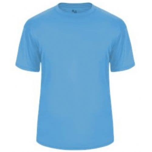 Badger Men's Ultimate Tee Badger heat seal logo on left sleeve. Self-fabric collar. Badger sport paneled shoulder for maximum movement. Superior interlock fabric for comfort. Double-needle hem. 100% Soft polyester moisture management/antimicrobial performance fabric. UPF 50+ sun protection from UVA and UVB.