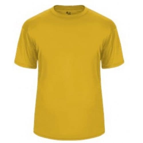 Badger Men's Ultimate Tee Badger heat seal logo on left sleeve. Self-fabric collar. Badger sport paneled shoulder for maximum movement. Superior interlock fabric for comfort. Double-needle hem. 100% Soft polyester moisture management/antimicrobial performance fabric. UPF 50+ sun protection from UVA and UVB.