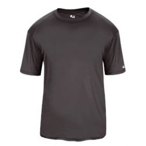 Badger Men's Ultimate Tee Badger heat seal logo on left sleeve. Self-fabric collar. Badger sport paneled shoulder for maximum movement. Superior interlock fabric for comfort. Double-needle hem. 100% Soft polyester moisture management/antimicrobial performance fabric. UPF 50+ sun protection from UVA and UVB.