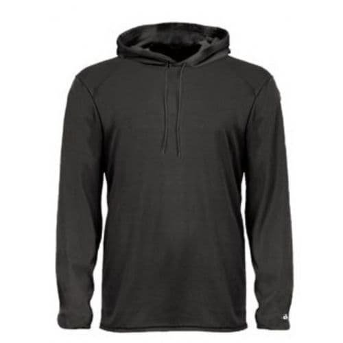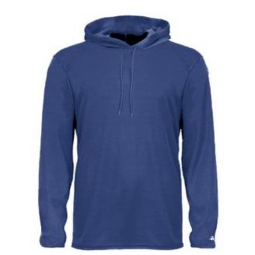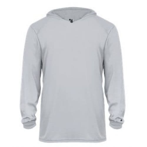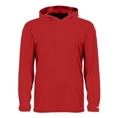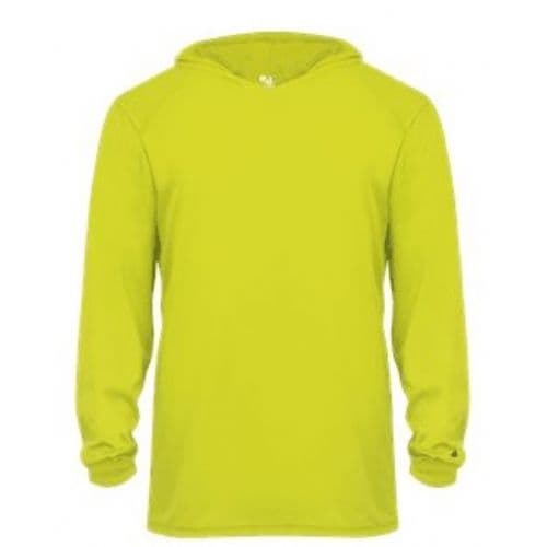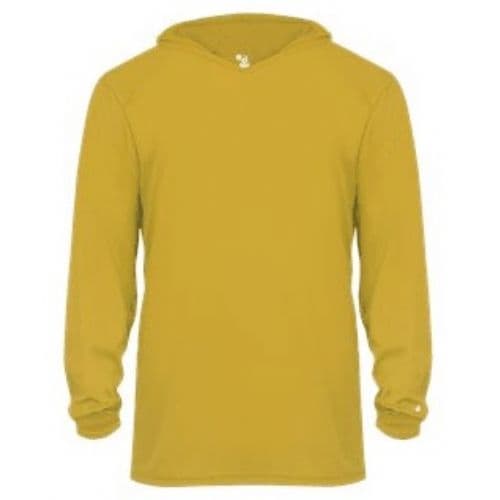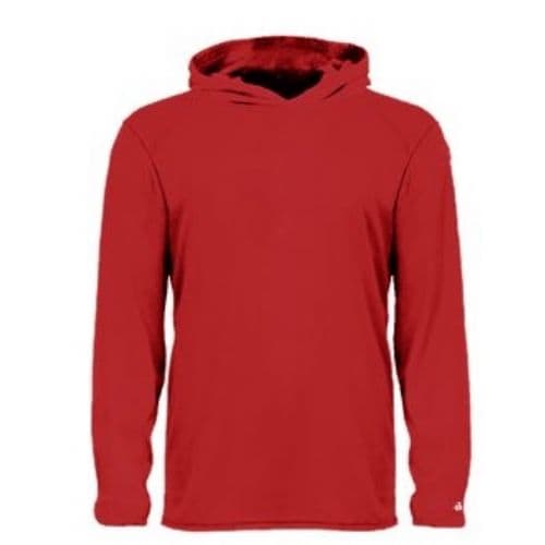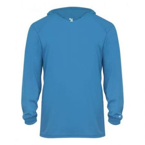 Young fitness enthusiasts can run laps on the track or practice with their team in chilly conditions while wearing this Badger Youth B-Core Long-Sleeve Hooded T-Shirt. Athletes will be able to stay dry, fresh and comfortable as they work up a sweat thanks to the moisture-management, antimicrobial fabric, which wicks away perspiration while blocking odors. Wearers can perform their best even in inclement weather, since this shirt features an attached hood to help prevent the elements from interfering with their workouts.