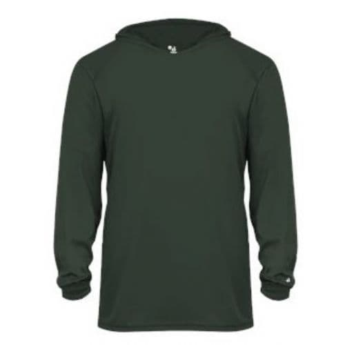 Young fitness enthusiasts can run laps on the track or practice with their team in chilly conditions while wearing this Badger Youth B-Core Long-Sleeve Hooded T-Shirt. Athletes will be able to stay dry, fresh and comfortable as they work up a sweat thanks to the moisture-management, antimicrobial fabric, which wicks away perspiration while blocking odors. Wearers can perform their best even in inclement weather, since this shirt features an attached hood to help prevent the elements from interfering with their workouts.