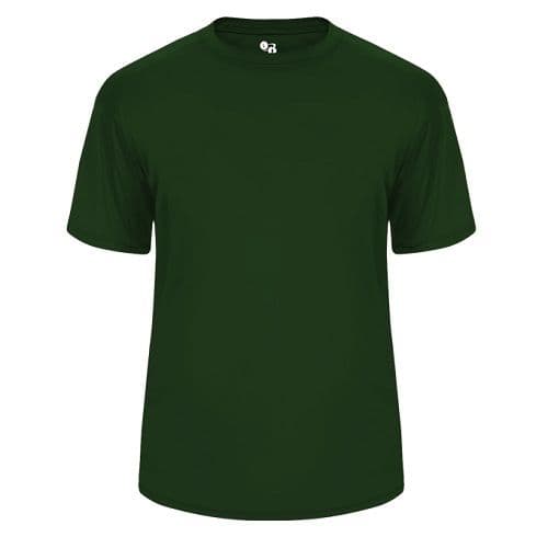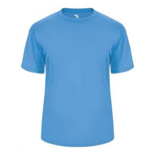 Badger Youth Ultimate Tee 100% Soft Polyester. UVA and UVB sun protection. Superior interlock fabric for comfort. Self-fabric collar. Badger sport paneled shoulder for maximum movement. Double-needle hem with tack. Badger heat seal logo on left sleeve.