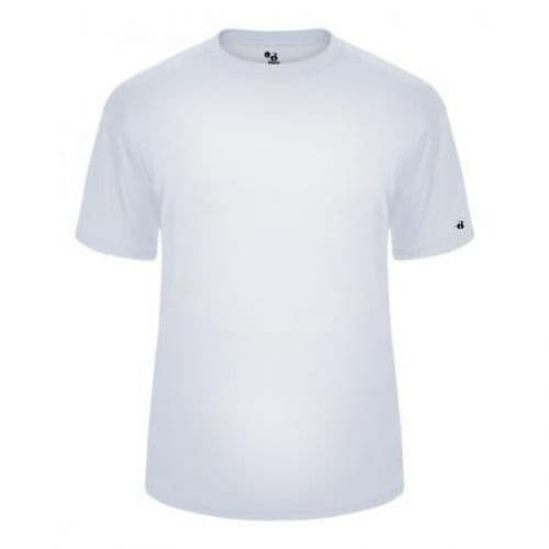 Badger Youth Ultimate Tee 100% Soft Polyester. UVA and UVB sun protection. Superior interlock fabric for comfort. Self-fabric collar. Badger sport paneled shoulder for maximum movement. Double-needle hem with tack. Badger heat seal logo on left sleeve.
