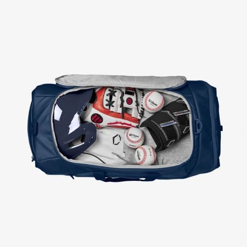 Coaches and players can keep the necessities nearby with the Tone Set Players Duffle, a larger duffle bag to stash batting helmets, fielding gloves, gear and more for travel or weekend tournaments. This packable duffle bag expands to 24x12x12.5 to stash all your valuables for on-field action. Toss your gear in the main compartment then leave your cleats in the vented shoe compartment to catch some fresh air. When its time to take the field, pull your bats from the divided bat sleeves and store cell phones or other valuables in the fleece-lined pocket. With a water-resistant bottom, the Tone Set Duffle will keep your gear fresh on the field or in the dugout.