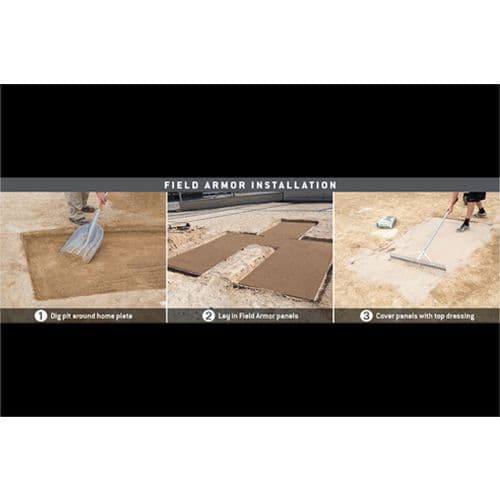 Field Armor Batters Box Fortification Panels save labor & keep a consistent playing surface. Field Armor panels will reduce the amount of time it takes to repair your batters box or pitching areas for those long weekend tournaments and make sure your field maintenance labor is reduced. These sets come with a Catchers box cutout.
