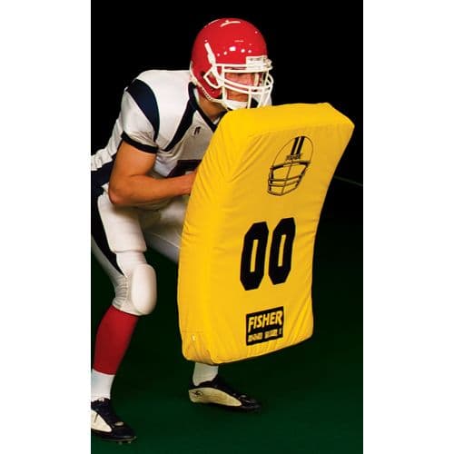 Extra large design gives even more protection. Rugged construction ensures safety and durability. Builds confidence . Larger size protects players while allowing more intense contact during drills. 3 Handles for stability. Web handles with foam inserts for a sure grip. Box "X" tack with vinyl reinforced backs. Die cut 100 Indentation Load Deflection foam keeps its shape for years. Block numbers provide target points.