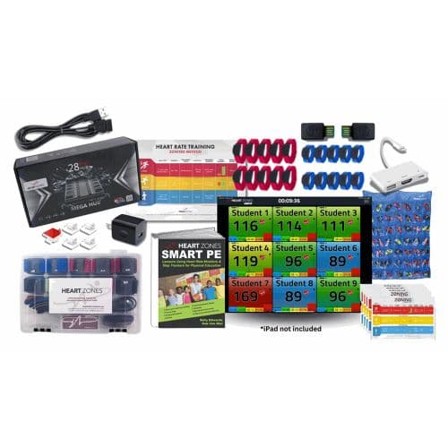 Heart Zones Curriculum Smart Pack- 10 Heart Zones Curriculum, Blink 3.0 Plus Armbands, Heart Zones Hanging Charging Station, Heart Zones Bridge, Heart Zones 28 Port Charger, plastic storage case, Heart Zones PE Software, one-time license fee (no yearly fees), Zoning Wall Chart, Zoning Cards, Installation Consulting