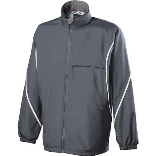 Holloway Circulate Waterproof Jacket Lightweight textured Storm-Bloc fabric features our bonded technology-10,000mm windproof/waterproof surface x 10,000mm breathable back for extreme weather protection. Woven label. Front zipper. Concealed adjustable hood with eyelets and concealed cord locks stows when not in use. Waterproof zippers and taped seams keep water out in toughest conditions. Set-in sleeves. Front zippered pockets. Elastic cuffs. Open bottom. Dropped tail. Wind/Water PROOF.