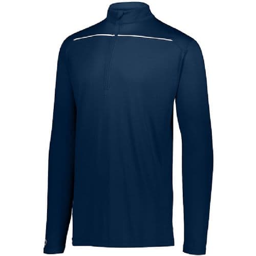Holloway Defer 1/2 Zip Pullover Dry-Excel™ 100% polyester wicking knit with true hue technology® that helps prevent dye migration. Dry-Excel™ 100% wicking polyester grid mesh yokes with true hue technology® that helps prevent dye migration. Wicks moisture. Tagless label. Half-zip pullover style. Contrast color piping on front and back mesh yokes. Set-in sleeves.