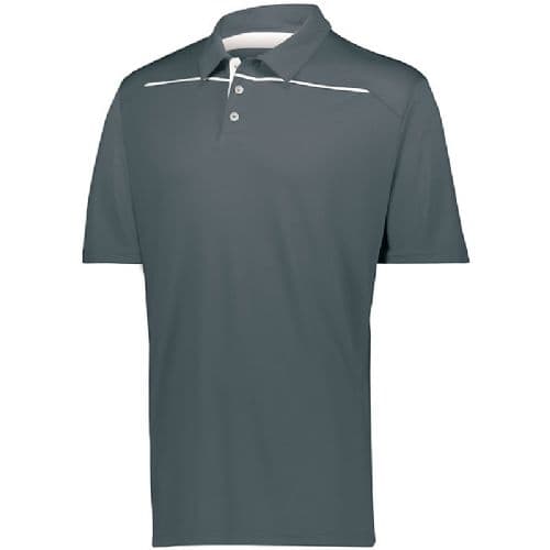 Holloway Defer Polo Dry-Excel™ 4.5 ounce 100% polyester wicking knit with true hue technology® that helps prevent dye migration. Dry-Excel™ 4.1 ounce 100% wicking polyester grid mesh yokes with true hue technology® that helps prevent dye migration. Wicks moisture. Tagless label. Three-button angled placket. Contrast color piping on front and back mesh yokes. Set-in sleeves.
