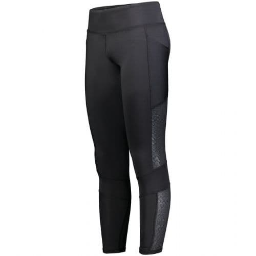 Holloway Girl's 7/8 Lux Tight Heavyweight 88% polyester/12% spandex knit. 4-way stretch for maximum mobility. 94% polyester/6% spandex maze mesh side inserts. Fits close to body. Tagless label. Wide flat waistband for secure fit and comfort. Inside drawcord. Phone pocket on upper thigh on both legs. Flatlock stitching provides comfort and helps prevent chafing.