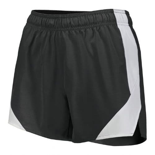 Holloway Girl's Olympus Shorts Shell is 90% polyester/10% spandex, 4-way stretch woven fabric. Lining is 100% polyester wicking crepe. Liner wicks moisture. Heat sealed label. Low rise, covered elastic waistband with inside drawcord. Inside key pocket. Center back valuables pocket with zippered closure. Inner brief with leg elastic. Girls inseam graded.