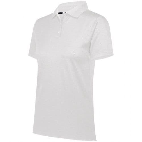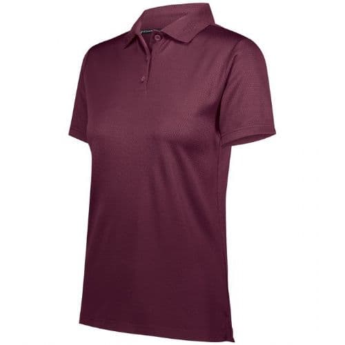 Holloway Ladies' Prism Polo Dry-Excel™ 4.8 ounce 100% polyester wicking honeycomb knit. UV SafeShield protects against the sun with 50+ UPF. Wicks moisture. Tagless label. Rib-knit collar with engineered mesh construction for breathability. Three button placket. Set-in sleeves with angled shoulder seam for mobility and comfort. Side vents.