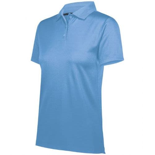 Holloway Ladies' Prism Polo Dry-Excel™ 4.8 ounce 100% polyester wicking honeycomb knit. UV SafeShield protects against the sun with 50+ UPF. Wicks moisture. Tagless label. Rib-knit collar with engineered mesh construction for breathability. Three button placket. Set-in sleeves with angled shoulder seam for mobility and comfort. Side vents.