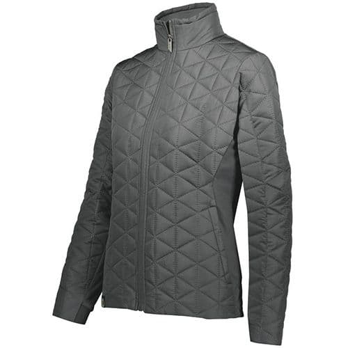 Holloway Ladies' Repreve® Eco Jacket 100% polyester MicroTec woven face with durable water-repellent finish to keep you dry. Made from Repreve® recycled polyester quilting for lightweight warmth. Weld engineered quilting that's decoration friendly. 78% polyester/22% spandex inserts, peached for softness. Ladies' fit. Woven labelFront zipper with antique nickel zipper pull and storm flap. Media port inside zippered valuables pocket. Front zippered pockets. Half-elastic cuffs. Dropped tail.