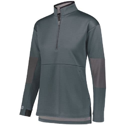 Experience the ultimate in softness and stretch with the Ladies Sof-Stretch Pullover by Holloway. Our Storm Dfend Technology features a durable water-resistant finish to keep you dry, while its knit softshell breathes to keep you comfortable. This polyester half-zip pullover features Sof-Stretch knit with DWR finish bonded to microfleece for warmth. The contrast color sleeve inserts add additional style to this versatile pullover.