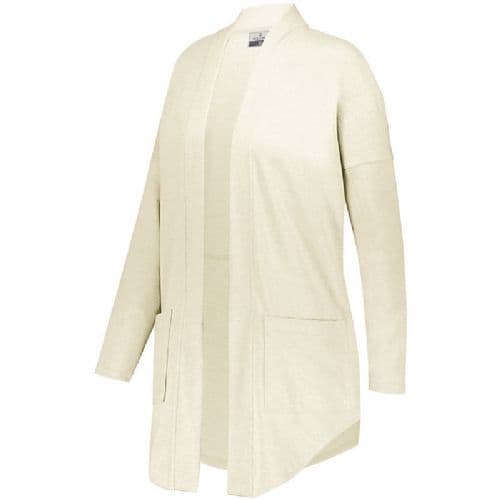 Holloway Ladies' Sophomore Cardigan 7.8 Ounce, 50% polyester/50% cotton french terry knit with vintage heathered look for worn-in feel. Ladies' fit. Exterior woven logo loop label. Two patch pockets. Dropped shoulder sleeves for mobility and comfort. Contoured bottom.