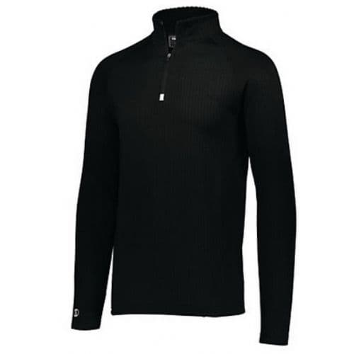 Holloway Men's 3D Regulate Lightweight Pullover 3D Regulate lightweight knit, 94% Polyester/6% Spandex tonal heathered brushed Waffle textured back for controlled warmth and wicking. 3D Regulate knit fabric rolls over to the front of collar for softness and comfort. Wicks Moisture. Woven label. Quarter zip pullover style and reflective metallic accent and zipper garage. Raglan sleeves for maximum mobility. 100% Lightweight matte woven Polyester zippered valuables pocket on wearers right side. Media port inside zippered valuables pocket for earbud cord. Open bottom.