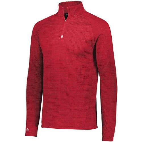 Holloway Men's 3D Regulate Lightweight Pullover 3D Regulate lightweight knit, 94% Polyester/6% Spandex tonal heathered brushed Waffle textured back for controlled warmth and wicking. 3D Regulate knit fabric rolls over to the front of collar for softness and comfort. Wicks Moisture. Woven label. Quarter zip pullover style and reflective metallic accent and zipper garage. Raglan sleeves for maximum mobility. 100% Lightweight matte woven Polyester zippered valuables pocket on wearers right side. Media port inside zippered valuables pocket for earbud cord. Open bottom.