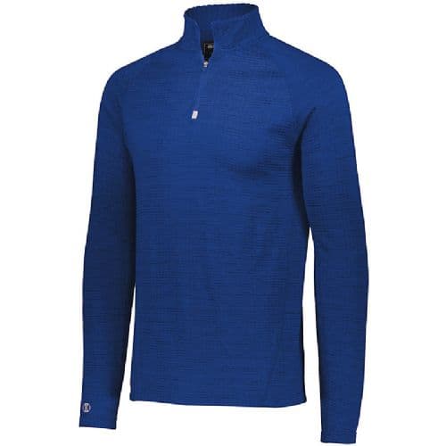Holloway Men's 3D Regulate Lightweight Pullover 3D Regulate lightweight knit, 94% Polyester/6% Spandex tonal heathered brushed Waffle textured back for controlled warmth and wicking. 3D Regulate knit fabric rolls over to the front of collar for softness and comfort. Wicks Moisture. Woven label. Quarter zip pullover style and reflective metallic accent and zipper garage. Raglan sleeves for maximum mobility. 100% Lightweight matte woven Polyester zippered valuables pocket on wearers right side. Media port inside zippered valuables pocket for earbud cord. Open bottom.